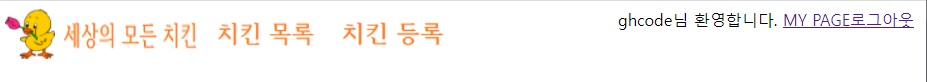 <div style = "width: 300px; height: 50px; float: right;" ><%=id%>님 환영합니다. <a href= "/test/UserPage.chic">MY PAGE</a><a href= "/test/logout.chic">로그아웃</a></div>
