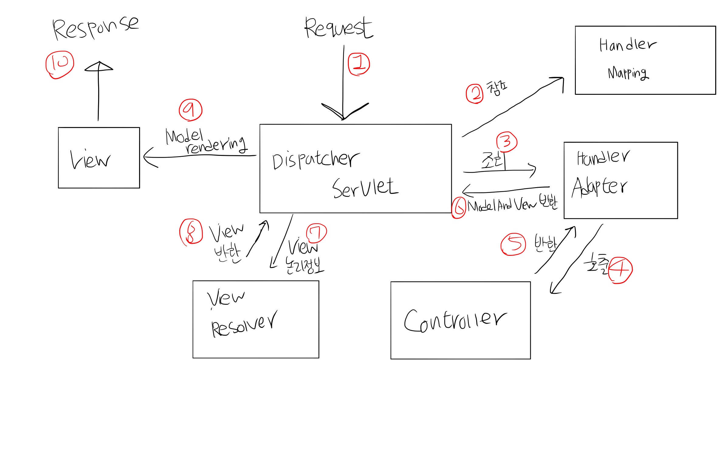 DispatcherServlet은 공통적으로 수행하는 작업을 마친 뒤 연결된 Controller를 호출하는데, 해당 RequestURl에 어떤 Controller에 연결되었는지를 알기 위해서 HandlerMapping 인스턴스를 참조한 후 사용가능한 Handler Adapter를 조회한 후 HandlerAdapter가 해당 Controller를 호출한다.