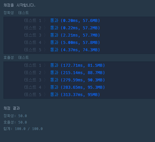 두 번째 풀이 - 정확성 50점 , 효율성 50점 - 100점!