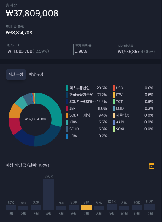 문제점은 내 포트폴리오의 50%에 해당하는 부동산&금융은 같이 떨어지고 있다는 점이다.
